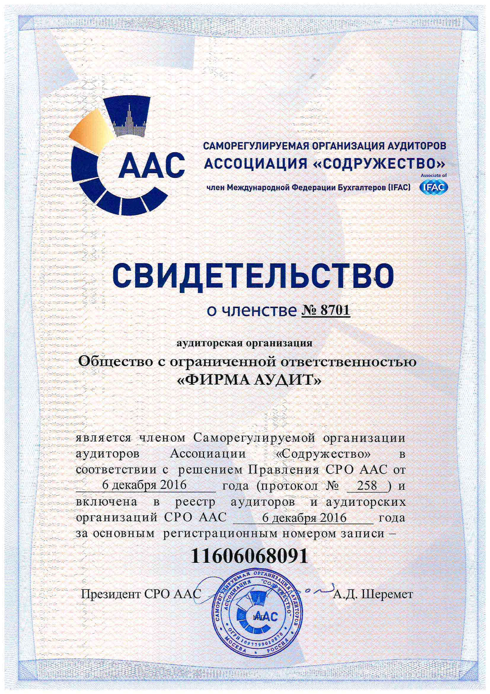 Мы являемся членом саморегулируемой организации аудиторов Ассоциация "Содружество" и включены в реестр аудиторов и аудиторских организаций СРО ААС за номером 11606068091.